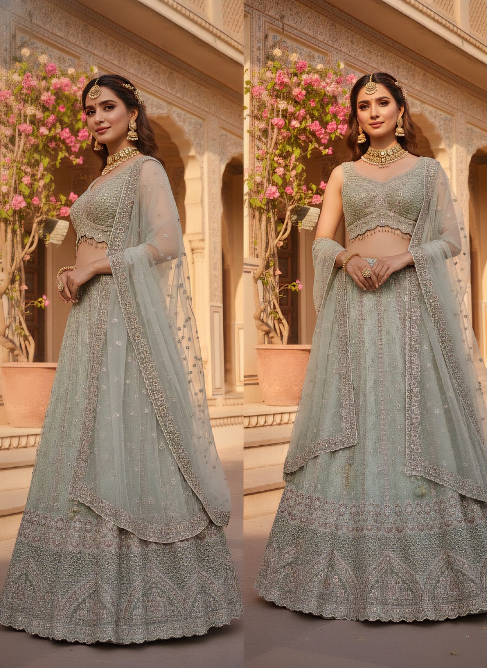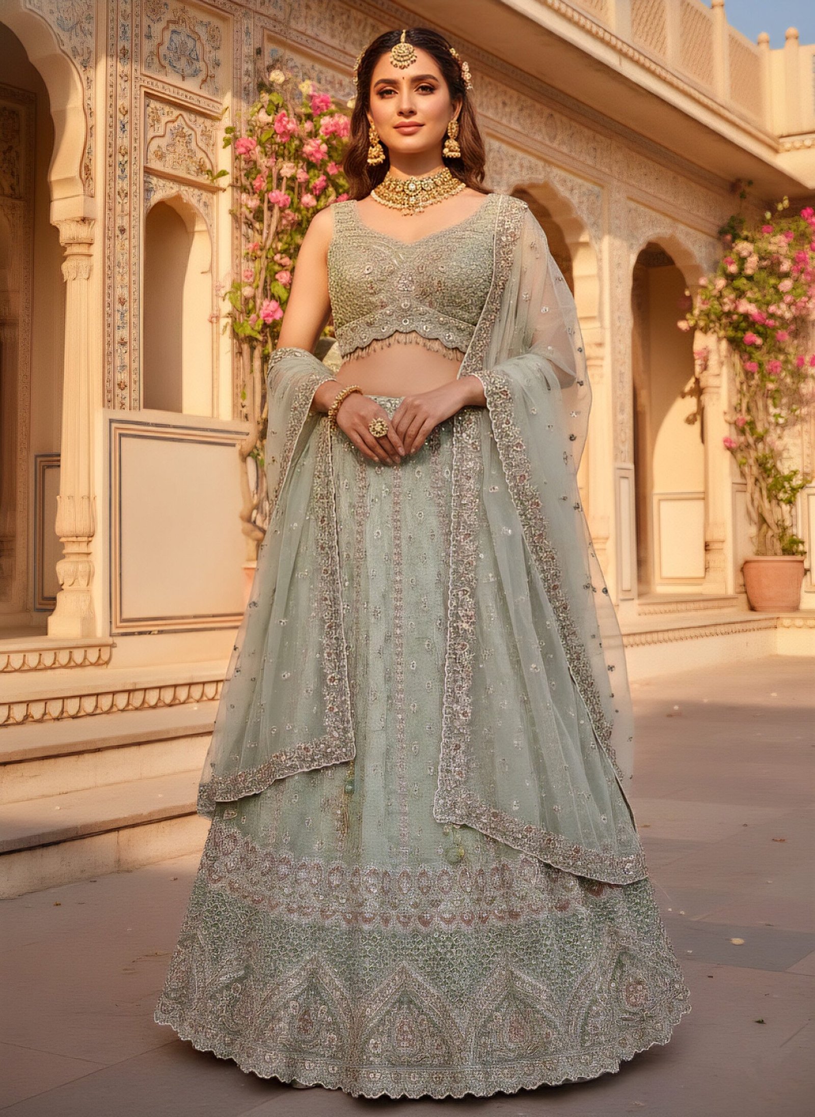 Elevate your festive wardrobe with this exquisite Pista Green Tissue Ghagra Set, meticulously crafted with heavy hand embroidery. The delicate tissue fabric drapes beautifully, offering a lightweight yet luxurious feel perfect for weddings, celebrations, and special occasions. Each piece showcases intricate embroidered detailing that reflects traditional craftsmanship and contemporary elegance. The soft pista green hue complements all skin tones, making it a versatile choice for the discerning wearer. Ideal for those who appreciate fine artisanal work and timeless ethnic fashion.