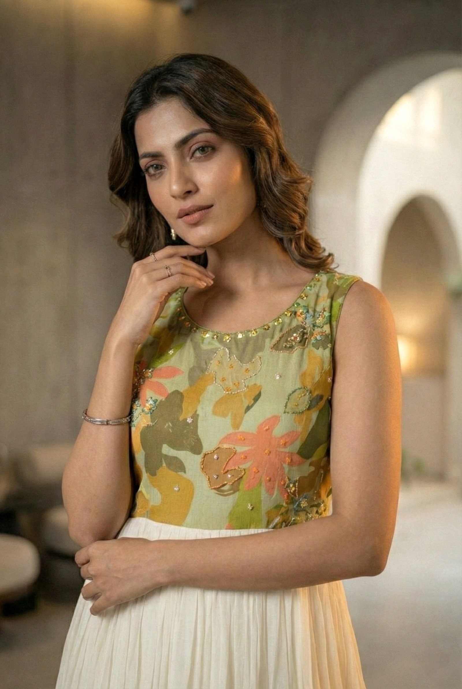 Elevate your ethnic wardrobe with this stunning yellow chinon long dress, featuring intricate floral digital prints that blend traditional elegance with contemporary design. Crafted from premium chinon fabric, known for its lightweight drape and breathable comfort, this piece is ideal for festive occasions, celebrations, or refined everyday wear. The vibrant yellow hue complements diverse skin tones, while the detailed floral motifs add visual depth and sophistication. Perfect for those seeking versatile, graceful silhouettes that transition seamlessly from day to evening events.